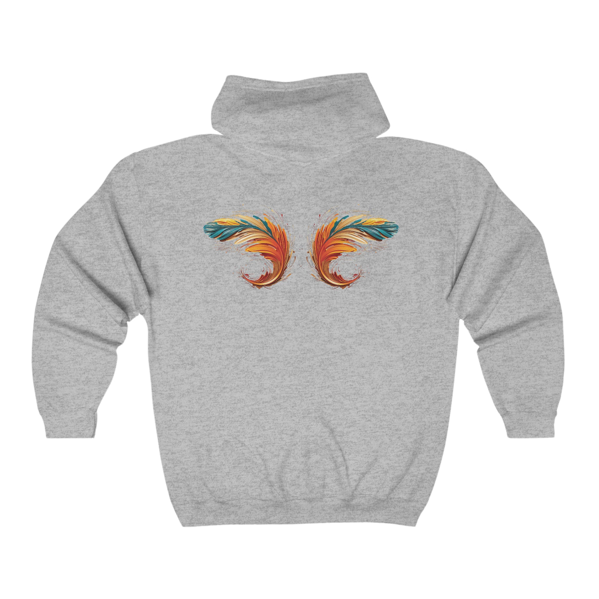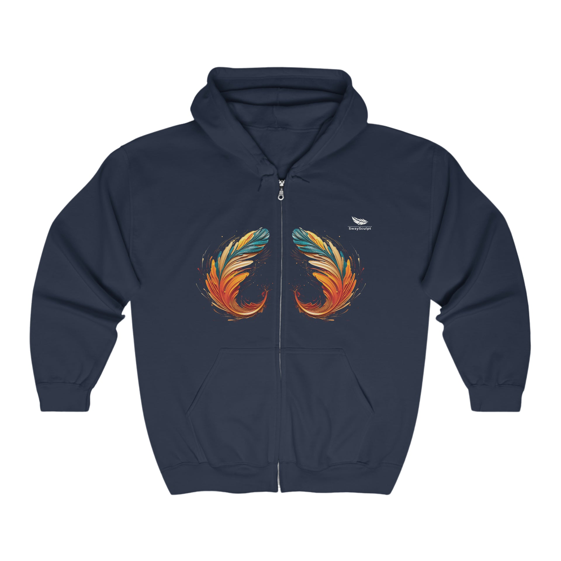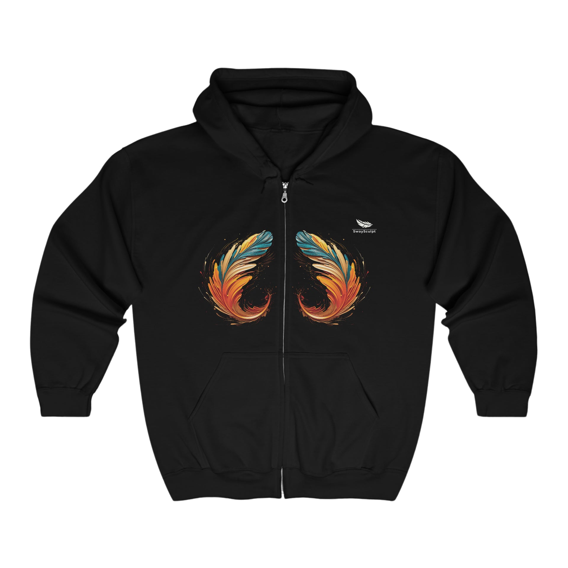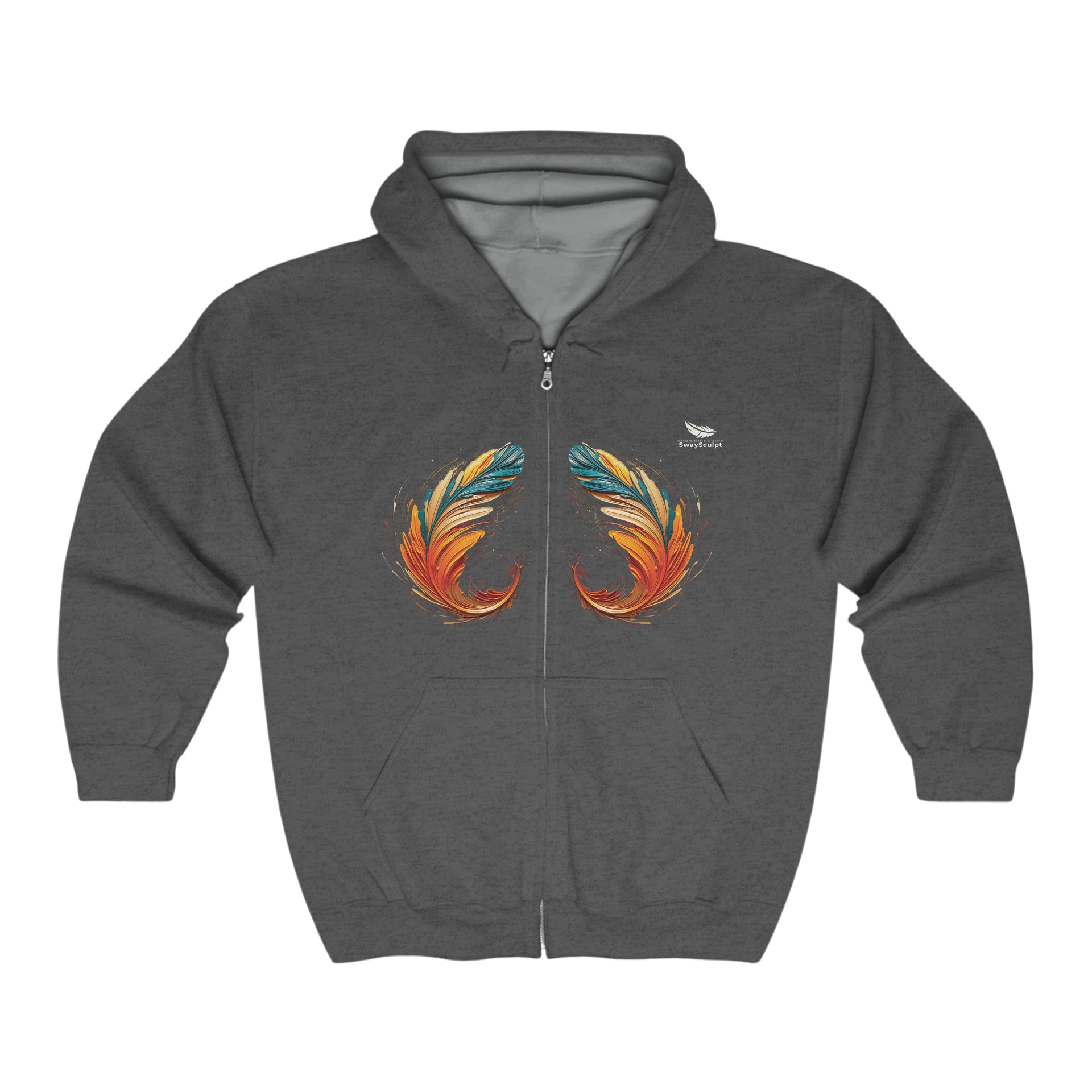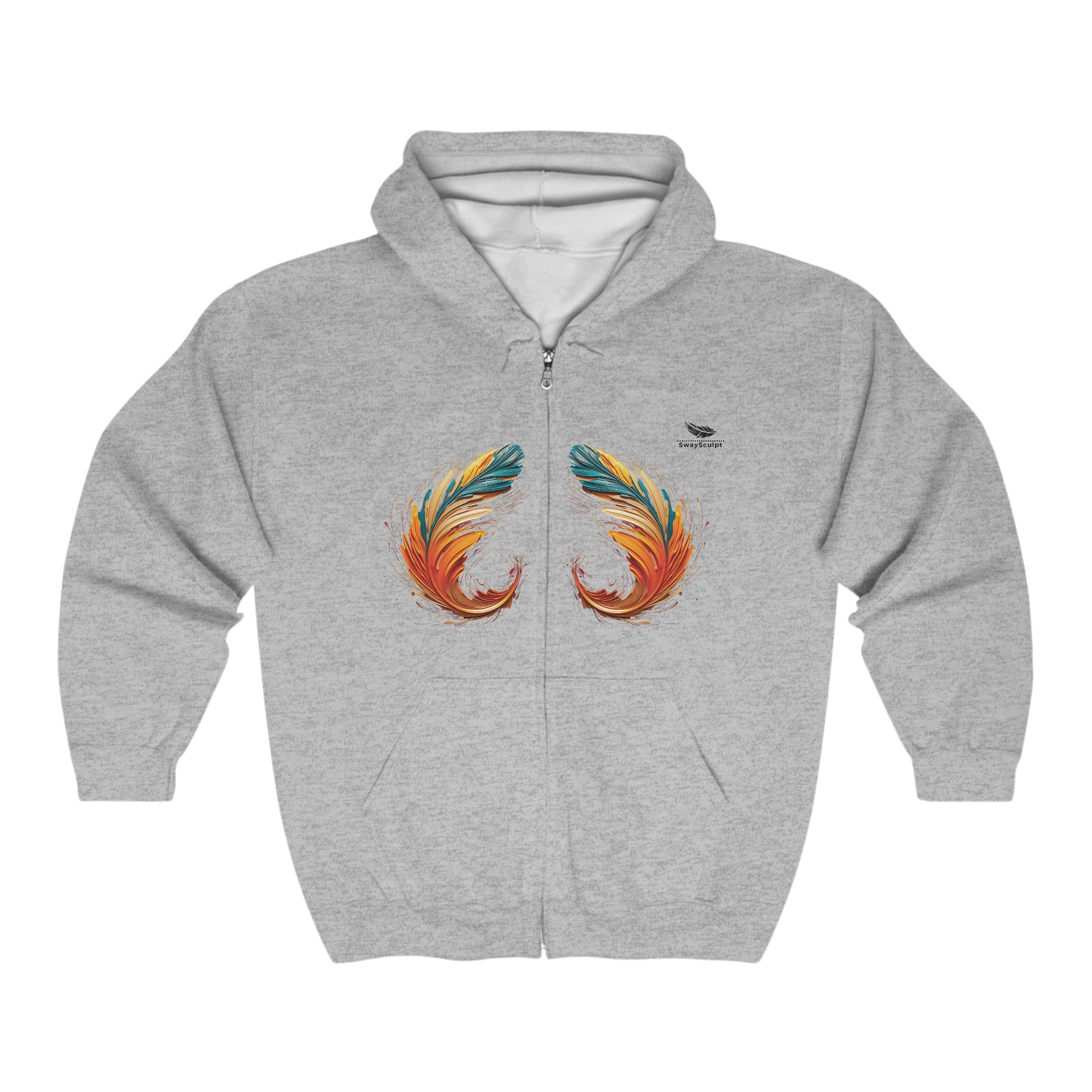 Artistic Feather Print Zip Hoodie – Comfort & Style Unisex