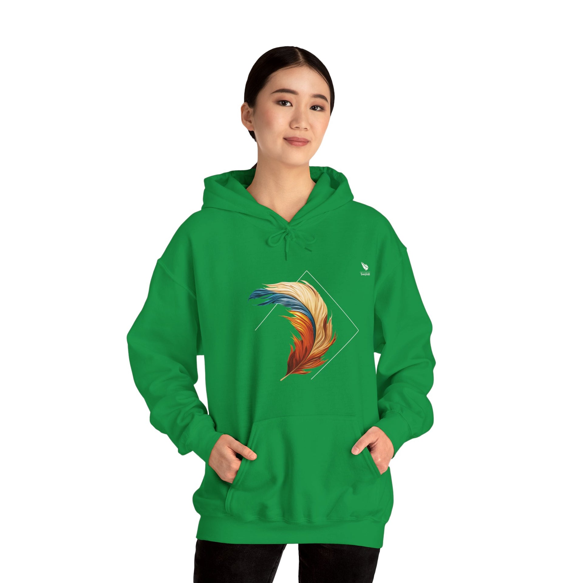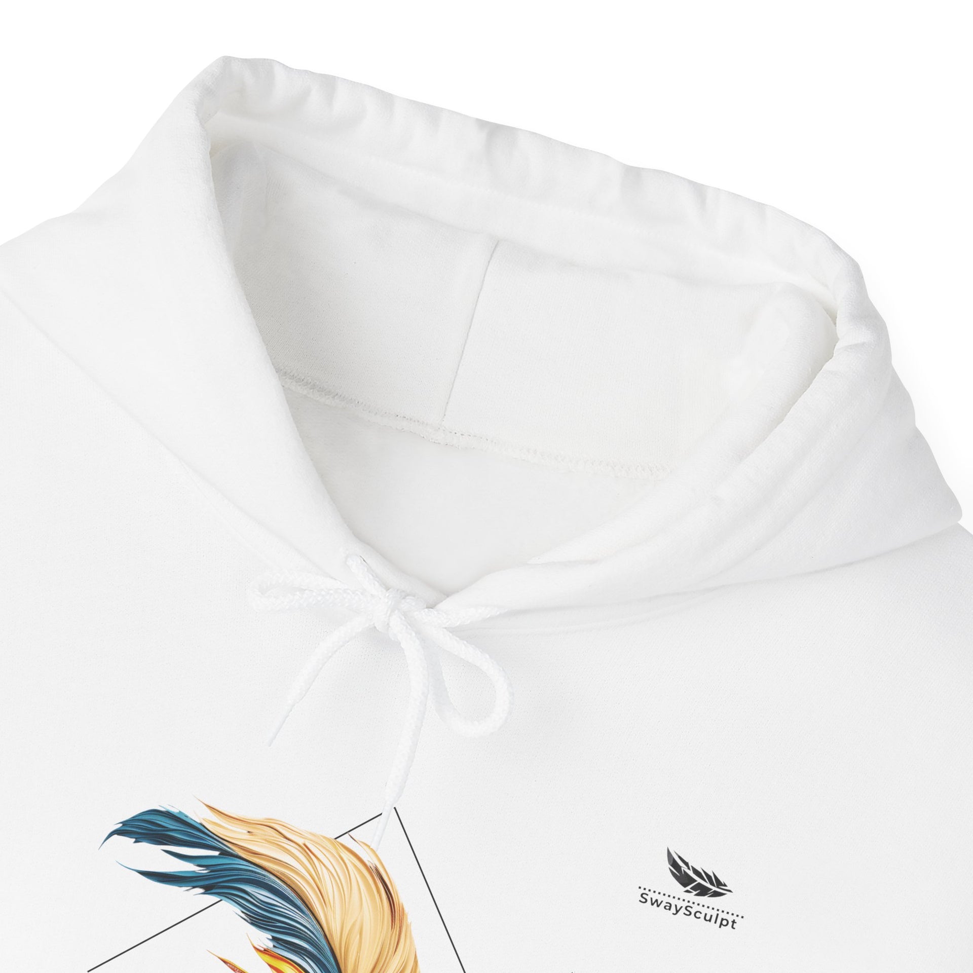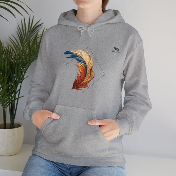 Are you ready to wrap yourself in a hoodie that feels like a warm embrace? Our Elegance in Motion Hoodie is not just another piece of clothing; it's a statement of style and comfort. With its exquisite feather artwork wrapped in a geometric illusion, this hoodie takes casual wear to new heights.
