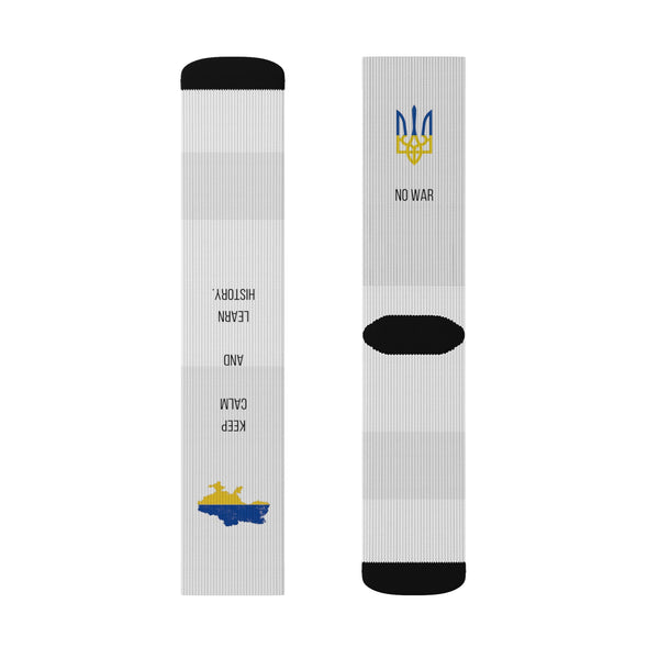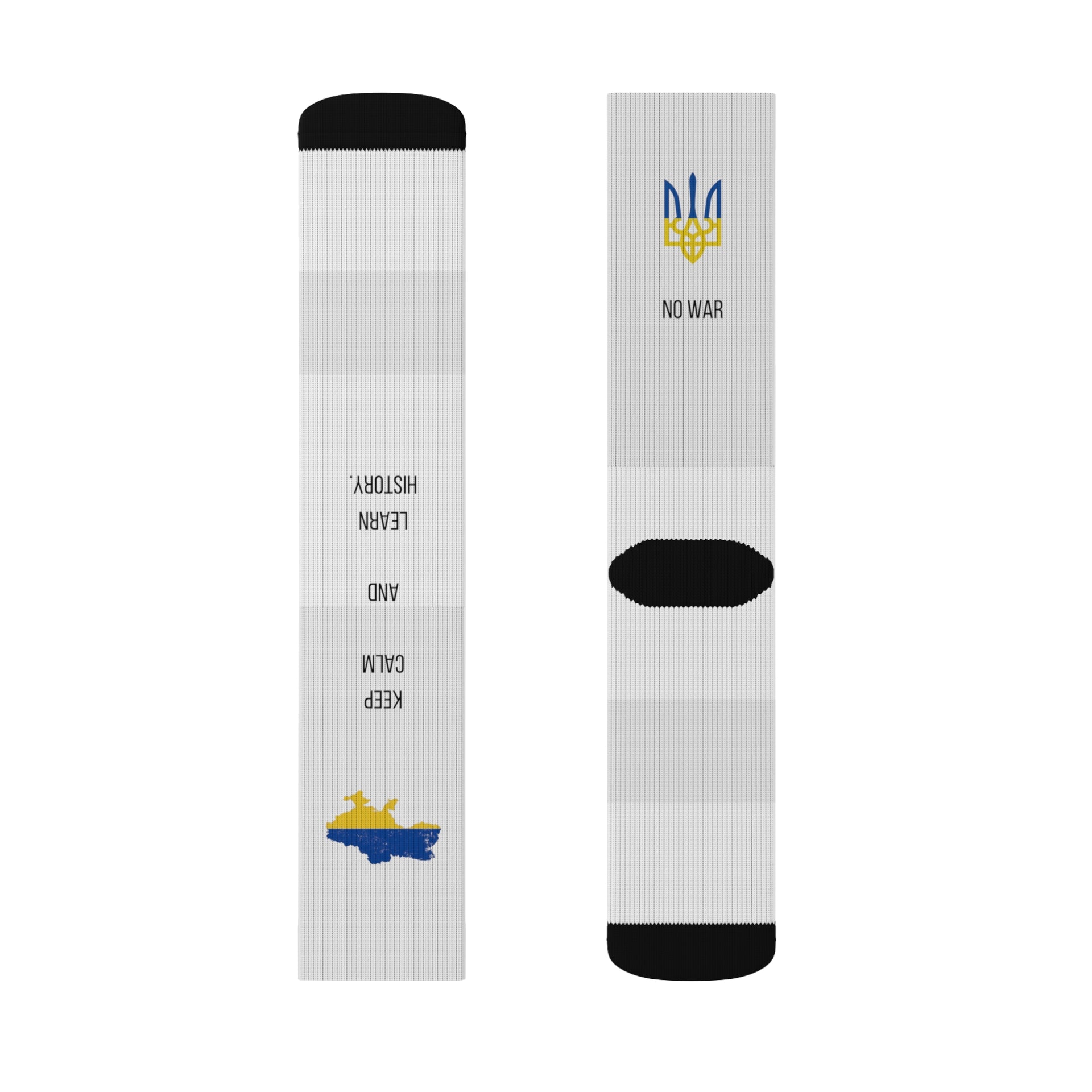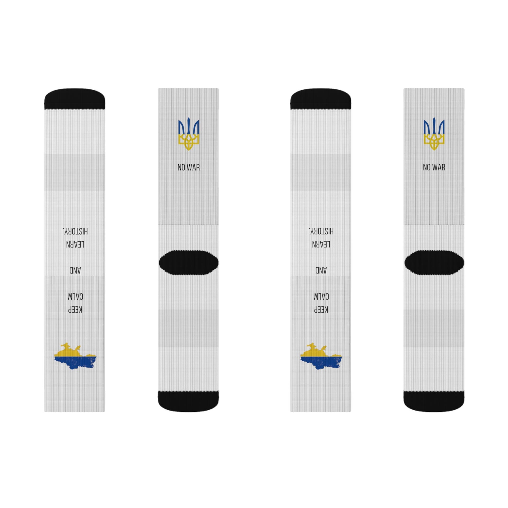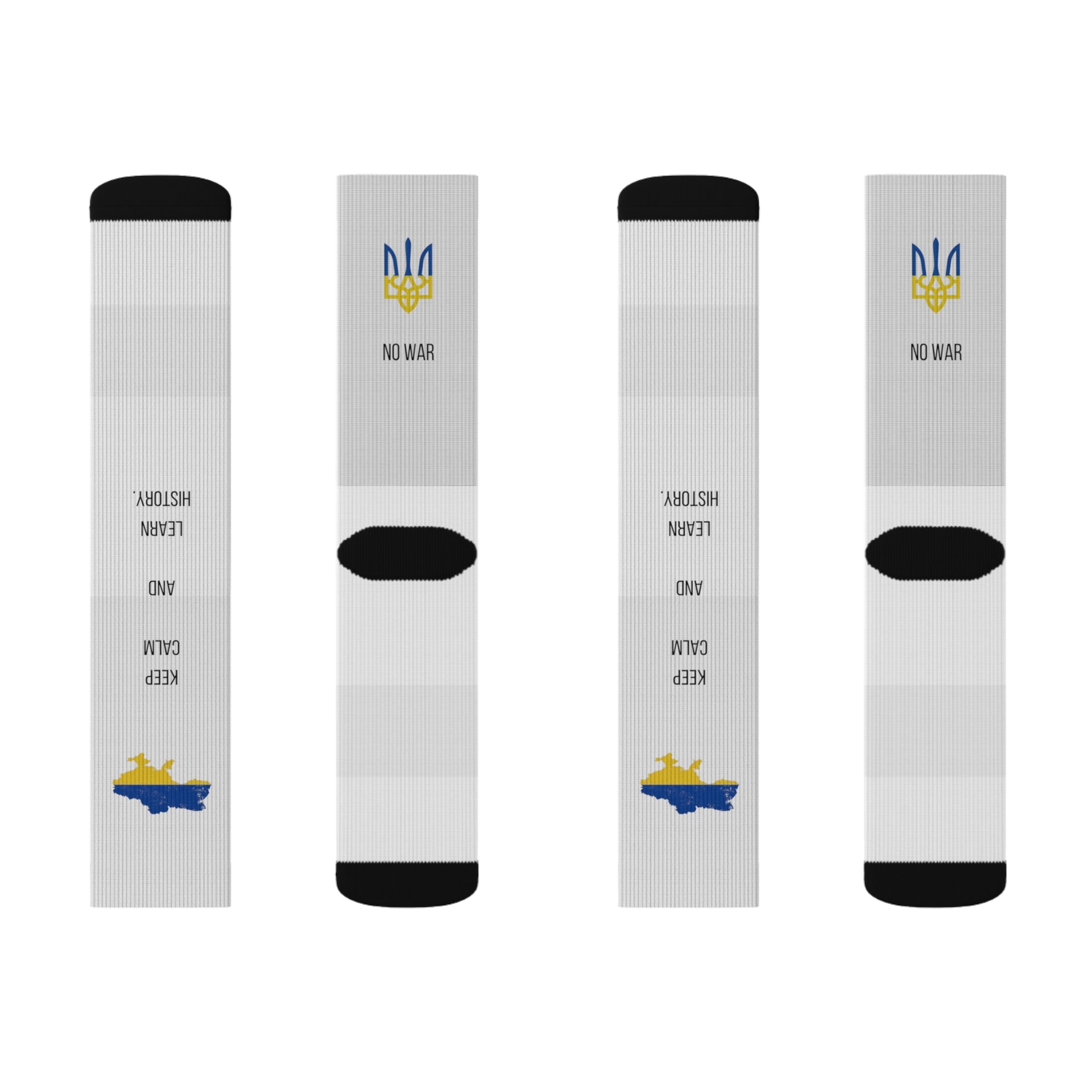 Looking to make a statement with every step? Our Sublimation Socks are not just any ordinary socks; they're a canvas for expression, carrying a powerful "NO WAR" message with the Ukrainian flag. Perfect for those who wish to stand out with a cause.