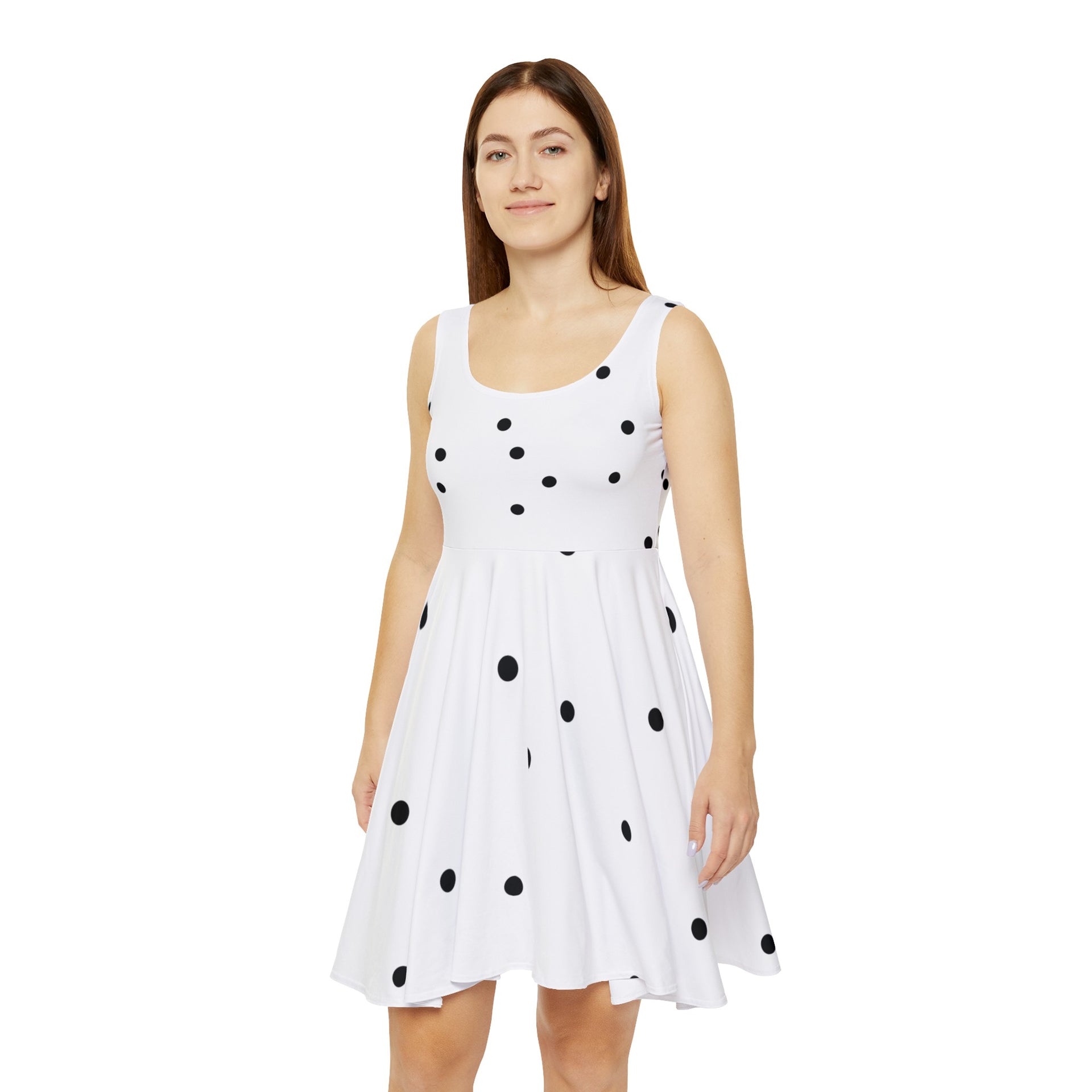 Looking for a dress that combines playfulness with polish? Our Women's Skater Dress, adorned with bold polka dots, offers a charming silhouette perfect for any occasion, from casual outings to more festive gatherings.